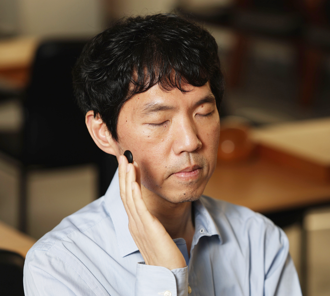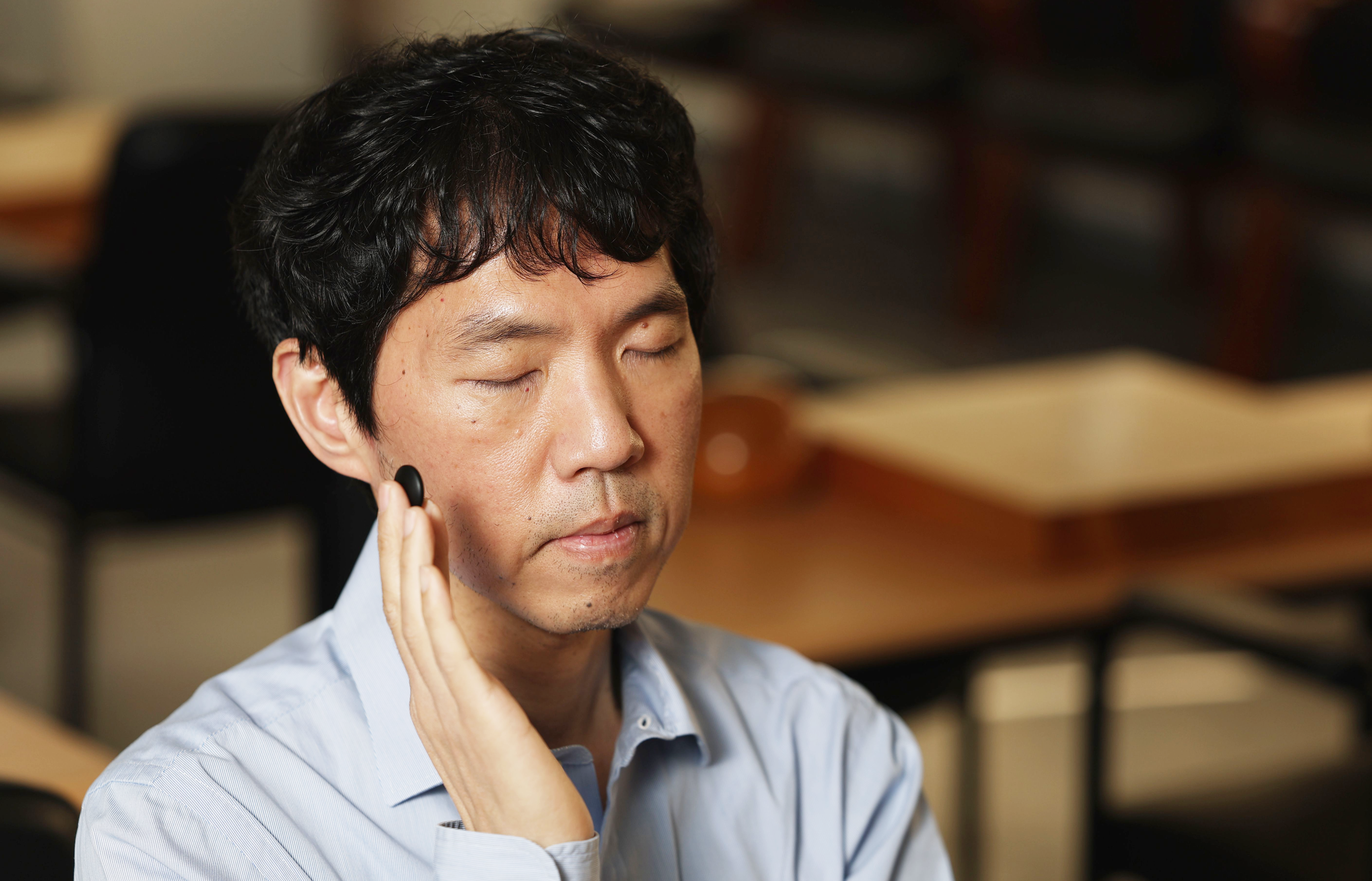 검은 돌을 든 채 눈을 감고 있는 이창호 9단. 돌부처의 모습을 닮았다. /사진=장경식 기자