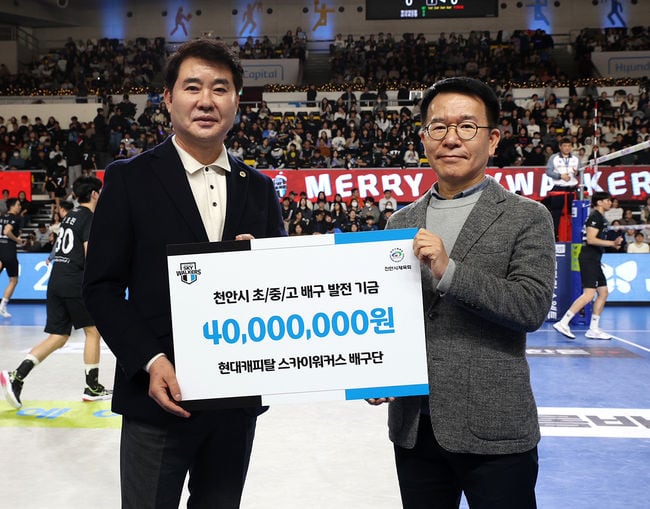 "배구로 꿈을 이루길" 현대캐피탈, 천안시 체육회에 발전기금 4000만원 전달